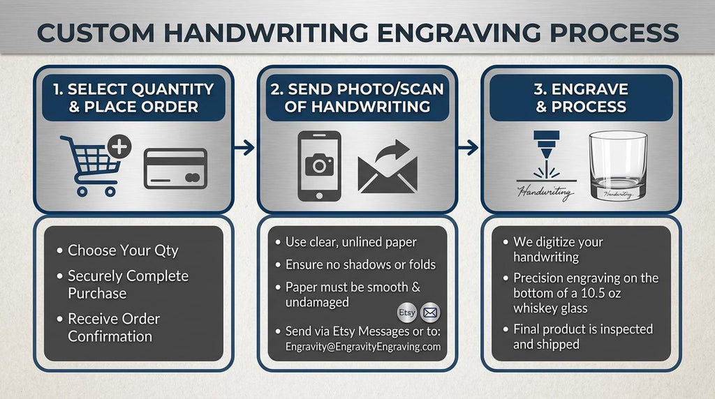 Please note: High-contrast photos of the handwriting work best (dark ink on white paper). If you are unsure if your image will work, feel free to message us before purchasing.