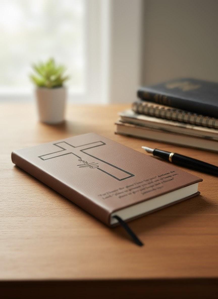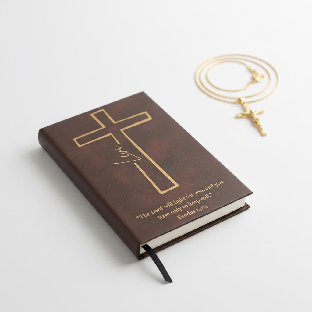 Gift yourself or others a meaningful companion that will inspire daily reflection, prayer, and devotion. This personalized engraved journal features a cross design and custom engraving of a name and one Bible verse, creating a keepsake for spiritual growth or a thoughtful Christian gift.